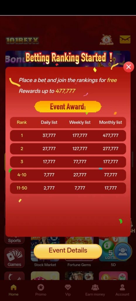101Betx एक ऐसा gaming platform है जहाँ welcome bonus, free cash, spin features और ranking system का अच्छा combination देखने को मिलता है।