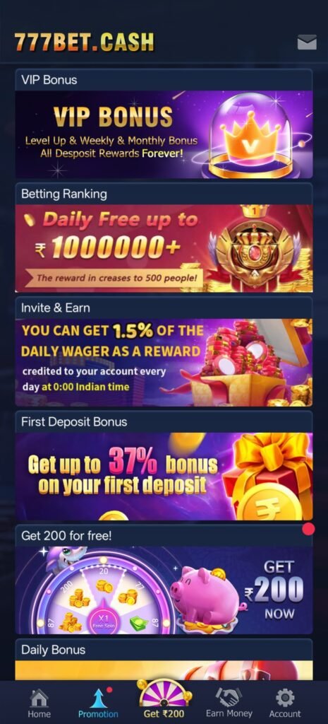 आज के users ऐसे platform prefer करते हैं जहाँ gameplay के साथ-साथ daily bonus, VIP rewards और extra earning systems जुड़े हों। 777 Bet इसी concept पर काम करता हुआ दिखता है, जहाँ user को बार-बार app open करने का reason मिलता है।