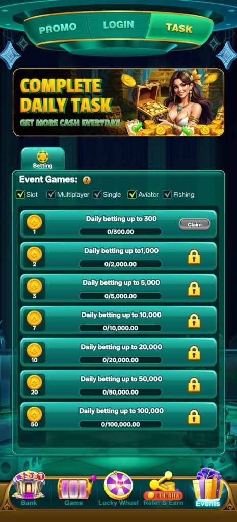 अगर कोई player लगातार platform में login करता है तो उसे 1 Day से 7 Day तक daily rewards मिलने का chance हो सकता है।
