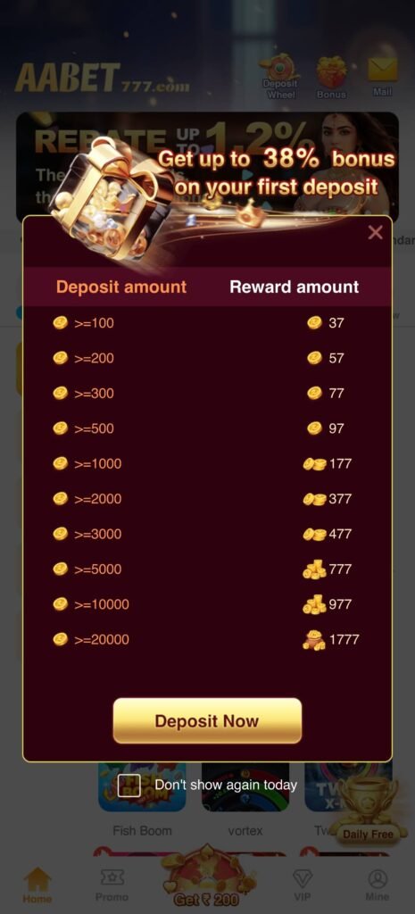 AABET Casino Game platform में deposit करने पर extra reward bonus भी मिलता है।