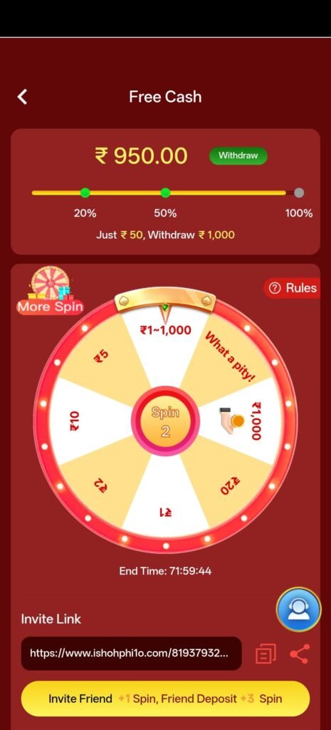 👉 एक key point: 1000 balance complete होने पर withdrawal option unlock होता है इसका मतलब यह है कि spin system सिर्फ timepass नहीं, बल्कि goal-oriented है।