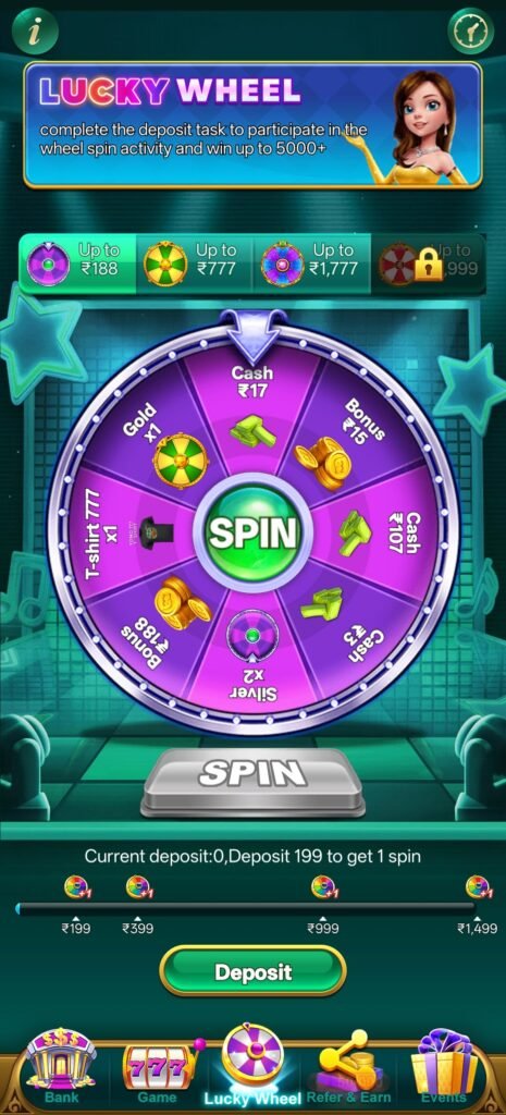 🎡 Lucky Wheel – 199 Deposit पर Spin Access