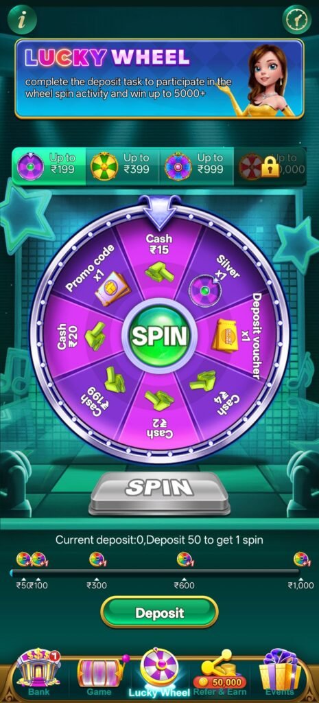 🎡 Lucky Wheel – 50 Deposit पर Early Spin Unlock