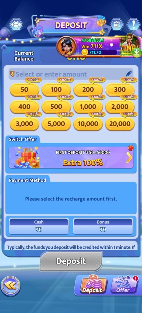 हर बार deposit → 100% extra