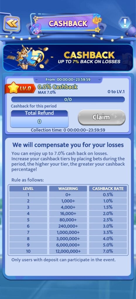 💸 Cashback System – Loss Control Feature