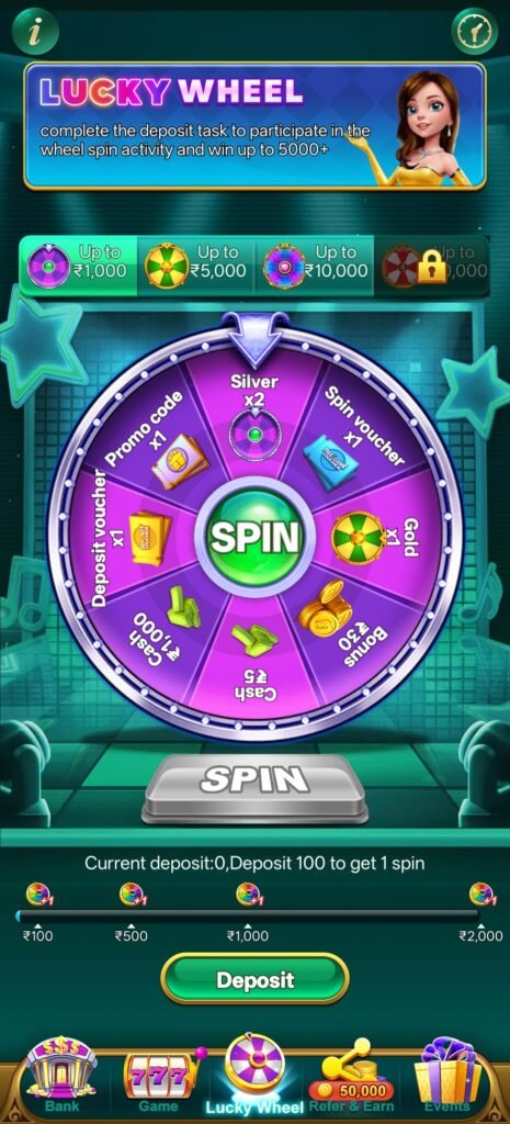 🎡 Lucky Wheel – 100 Deposit पर Spin (Win up to 1000)