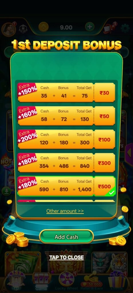 आज का user simple bonus से satisfy नहीं होता—उसे चाहिए visible jump, strong impact और ऐसा reward system जहाँ deposit के बाद तुरंत फर्क दिखे। Jaiho Rummy इसी expectation को target करता है। welcome bonus, ultra-high deposit boost, early spin unlock, login rewards, promo engine और daily incentives—all मिलकर एक power-packed reward ecosystem बनाते हैं जो शुरुआत से ही user को momentum दे देता है।