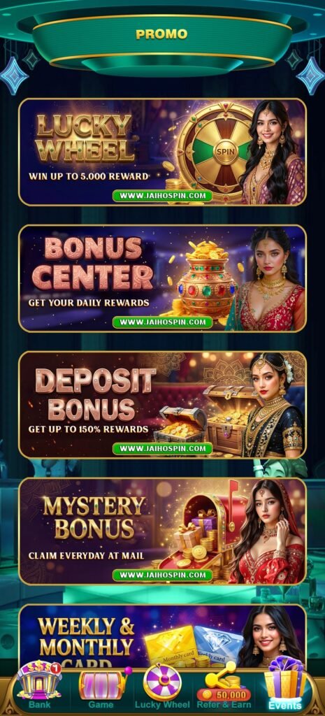 Jaiho Spin एक ऐसा gaming platform है जहाँ gameplay के साथ-साथ welcome bonus, deposit rewards, lucky spin और extra features का combination देखने को मिलता है।