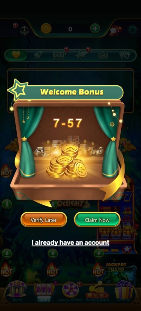 नए users को शुरुआत में 7 से 57 तक welcome bonus मिलने का chance हो सकता है।