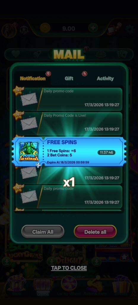 ✔ बीच-बीच में spin और mail rewards आते रहें