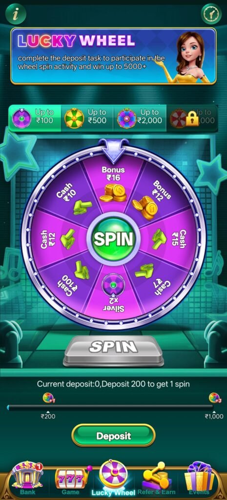 200 add करने पर lucky wheel unlock