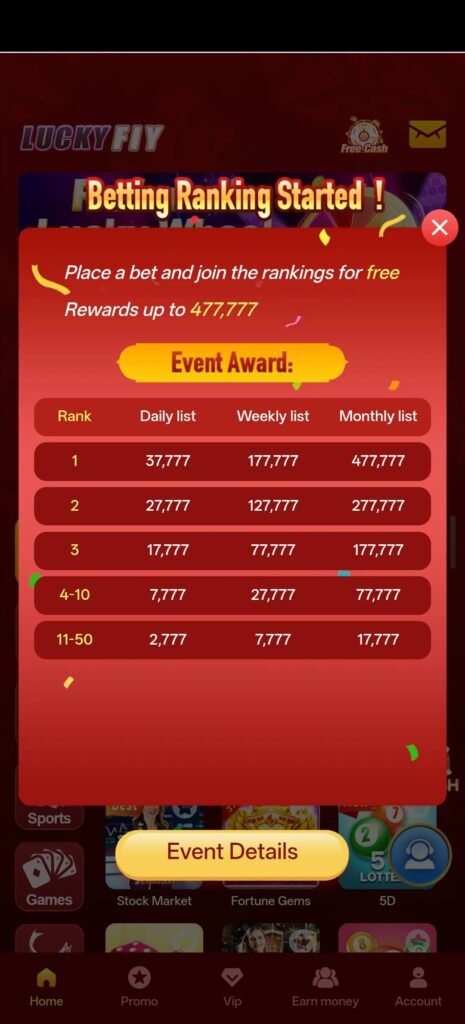 कई apps offer दिखाते हैं लेकिन user को समझ नहीं आता कि आगे क्या मिलेगा। Lucky Fly Bet यहाँ थोड़ा अलग approach लेता है—यह शुरुआत में ही user को free cash, spin और reward structure के hints दे देता है, जिससे curiosity बनती है और user आगे explore करता है।