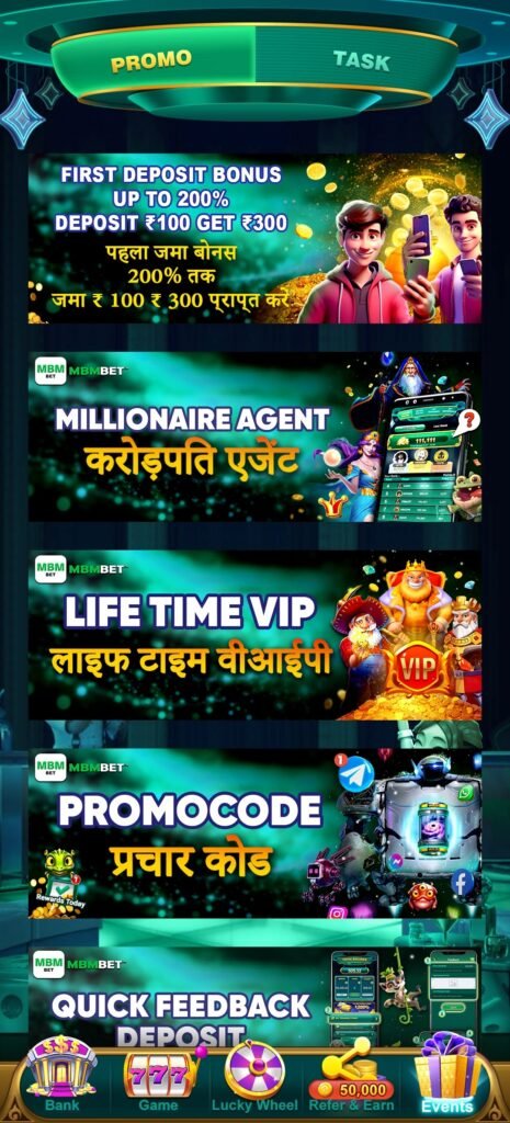 आज का user basic gameplay से satisfy नहीं होता—उसे चाहिए maximum return on every deposit, instant reward feedback और ऐसा system जहाँ growth visible हो। MBMBet इसी mindset को target करता है। welcome bonus, massive deposit boost, spins, tasks और daily rewards—all मिलकर एक high-intensity engagement ecosystem create करते हैं।