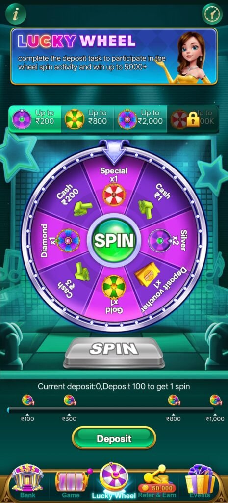 🎡 Lucky Wheel – 100 Deposit पर Spin Unlock