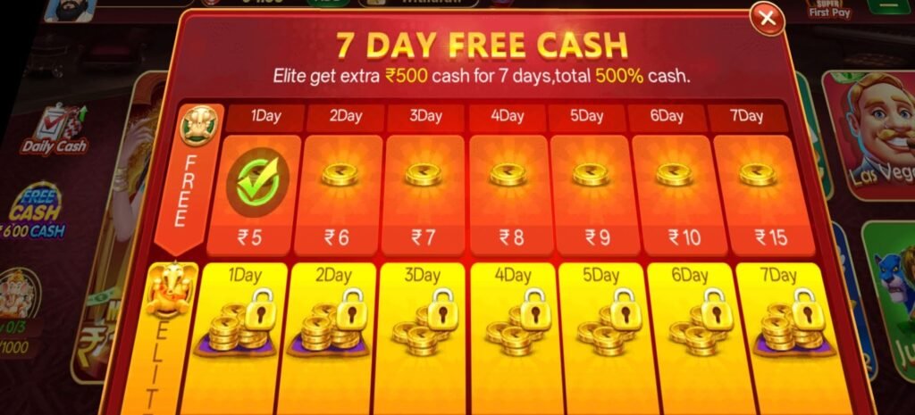 Platform में “Elite” option दिया गया है जिसके माध्यम से 7 दिनों के भीतर extra ₹500 तक reward प्राप्त किया जा सकता है। Total benefit 500% cash structure तक mention किया गया है, जो terms and conditions पर आधारित होता है।