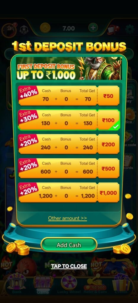इस तरह का welcome reward feature players को शुरुआत में extra gaming balance देता है जिससे वे platform को आसानी से explore कर सकते हैं।