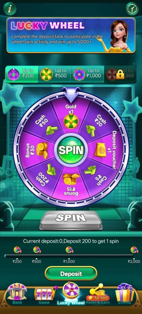 जब कोई player 200 deposit करता है तो उसे Lucky Wheel Spin करने का chance मिलता है।
