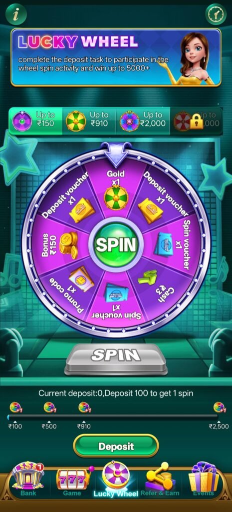 Rummy 91 में Lucky Wheel Spin Feature भी दिया गया है।