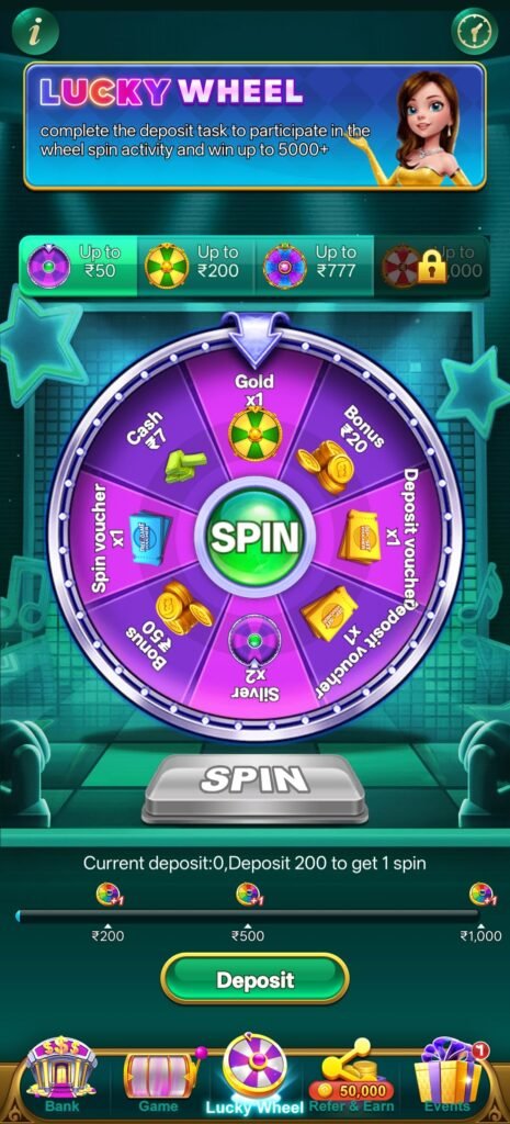 🎡 Lucky Wheel – 50 Deposit पर Spin