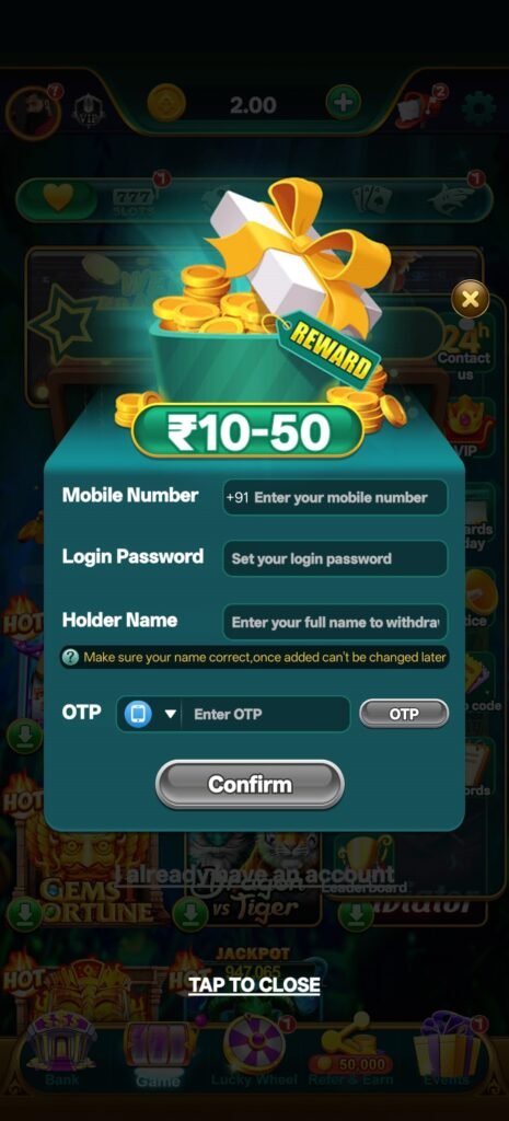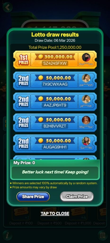 यह एक नया mobile gaming app है जहाँ players को कई तरह के bonus rewards, lucky features और different game modes देखने को मिलते हैं। इस app की सबसे खास बात यह है कि यहाँ small deposit से भी gameplay शुरू किया जा सकता है।