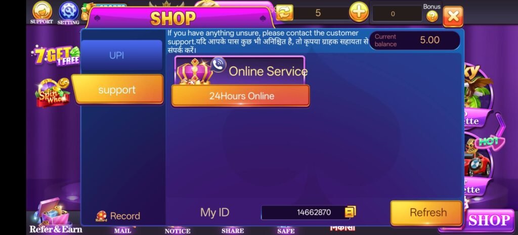 Users deposit, withdrawal या technical issue के लिए help ले सकते हैं।