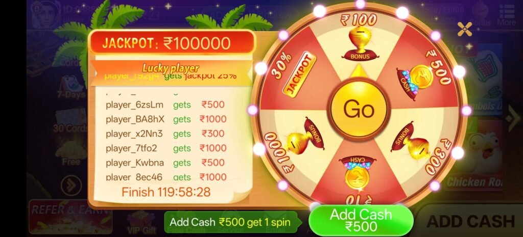 ₹500 deposit करने पर Jackpot Spin मिलता है।