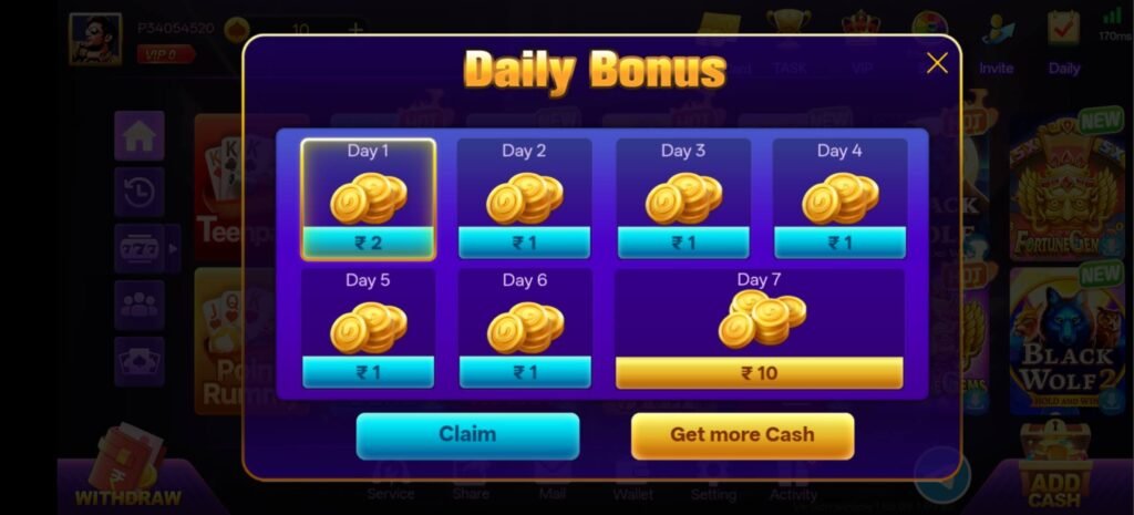 Teen Patti Win का सबसे basic और popular feature है Daily Bonus system।