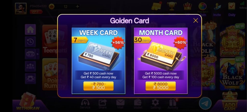 Teen Patti Win का एक interesting feature है Golden Card reward system।