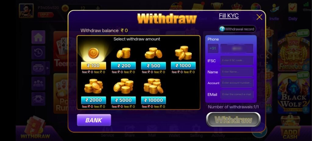 💰 Teen Patti Win Game Minimum Withdrawal System