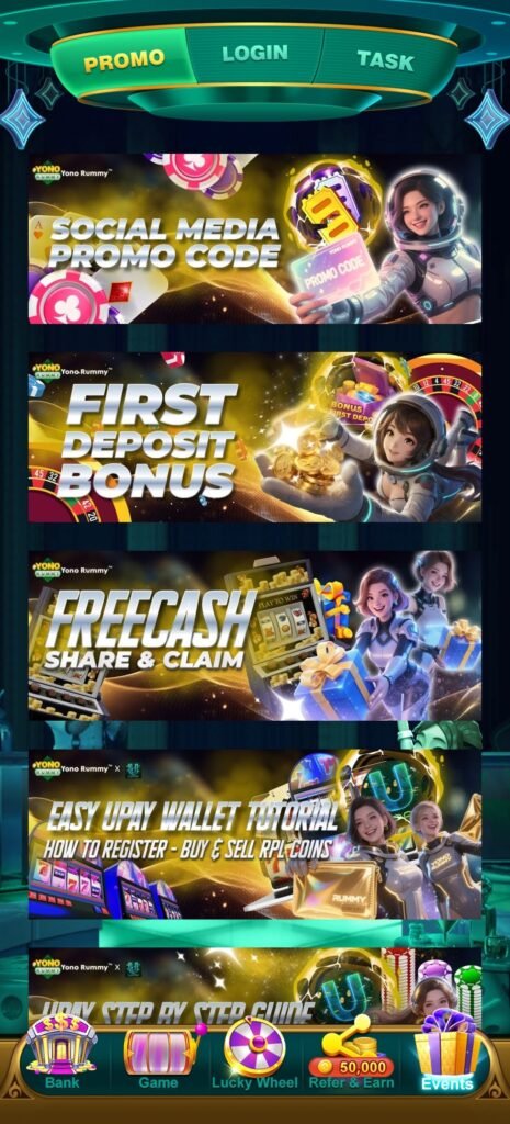 आज के time में players सिर्फ rummy खेलना ही नहीं चाहते, बल्कि साथ में मिलने वाले login gifts, spin rewards और promo benefits भी देखते हैं। Yono Rummy इसी approach को follow करता है, जहाँ gameplay के साथ-साथ अलग-अलग earning opportunities भी देखने को मिलती हैं।